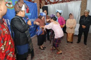 Acara diawali pemakaian seperangkat pakaian adat Simalungun berupa Hiou Pamotting dan Bulang yang disematkan oleh Partuha Maujana Simalungun disaksikan dr Susanti didampingi Ketua Dekranasda H Kusma Erizal Ginting SH, kepada Rinto Leoni Manullang didampingi suami.