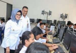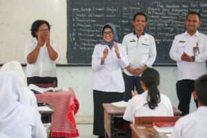 Wali Kota Pematangsiantar dr Susanti Dewayani SpA bersama Plt Kepala Dinas Pendidikan (Kadisdik) Junaedi Antonius Sitanggang SSTP MSi mengunjungi dua sekolah, Rabu (28/02/2024).