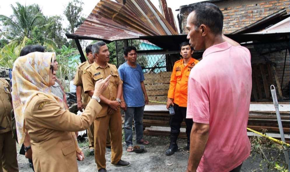 Wali Kota Pematang Siantar dr Susanti Dewayani SpA, mengunjungi dan memberi bantuan kepada korban kebakaran di Sumber Jaya 1 Gang Inpres Kelurahan Sumber Jaya, Kecamatan Siantar Martoba, Senin (17/7).