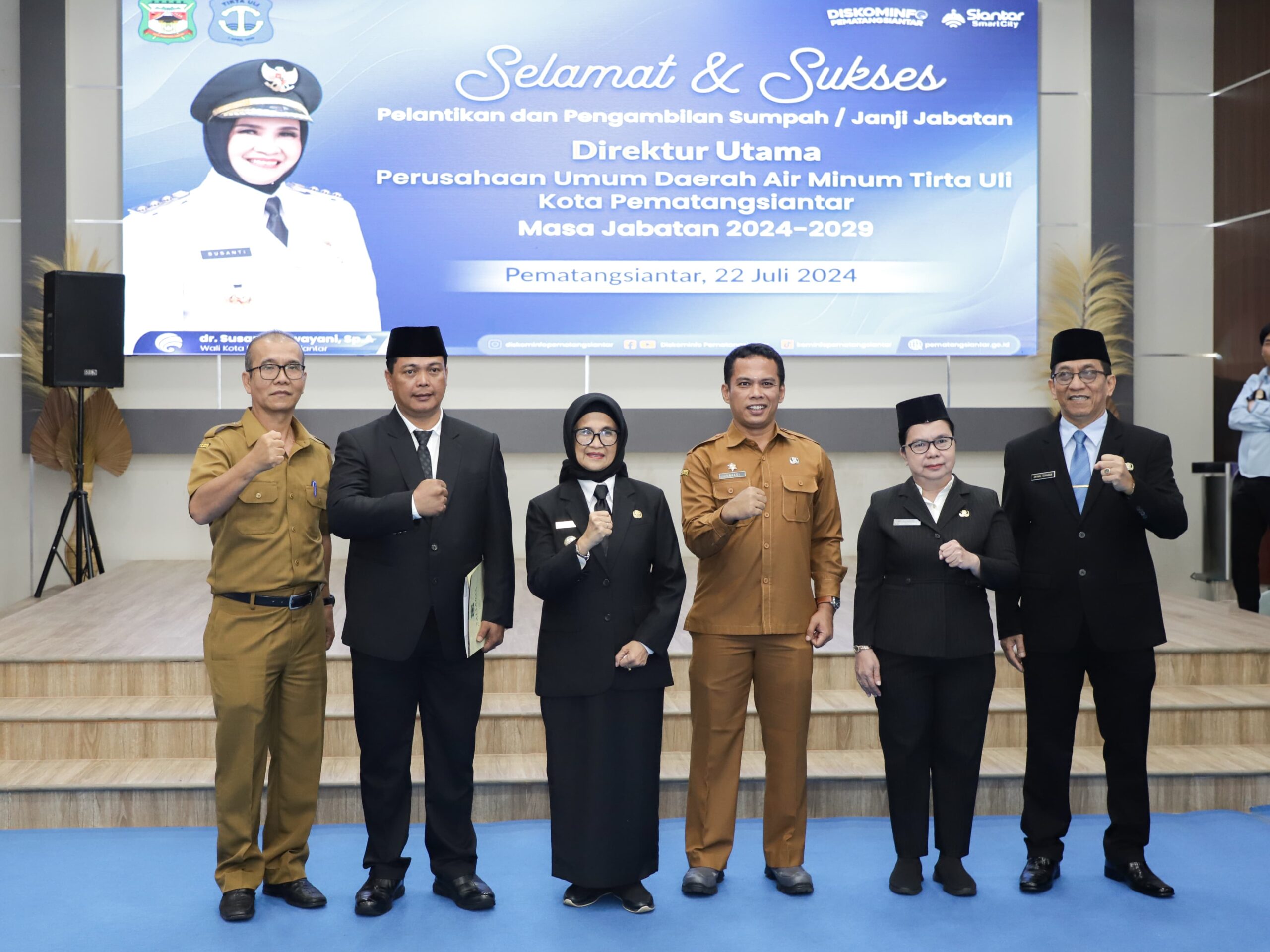 Wali Kota Pematangsiantar dr Susanti Dewayani SpA melantik dan mengambil sumpah jabatan Arianto ST MM sebagai Direktur Utama (Dirut) Perusahaan Umum Daerah (Perumda) Air Minum Tirta Uli Kota Pematangsiantar Masa Jabatan 2024-2029.