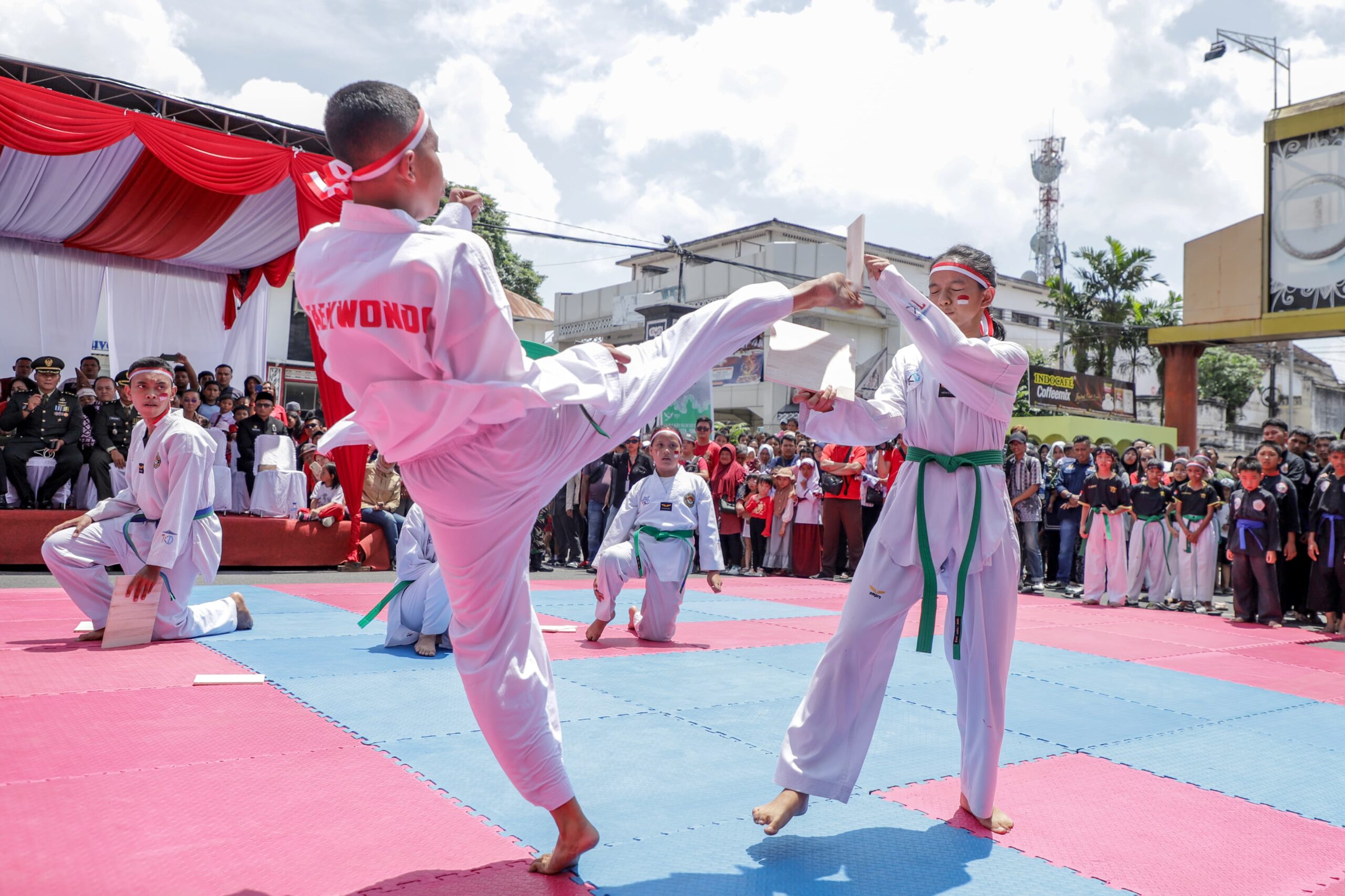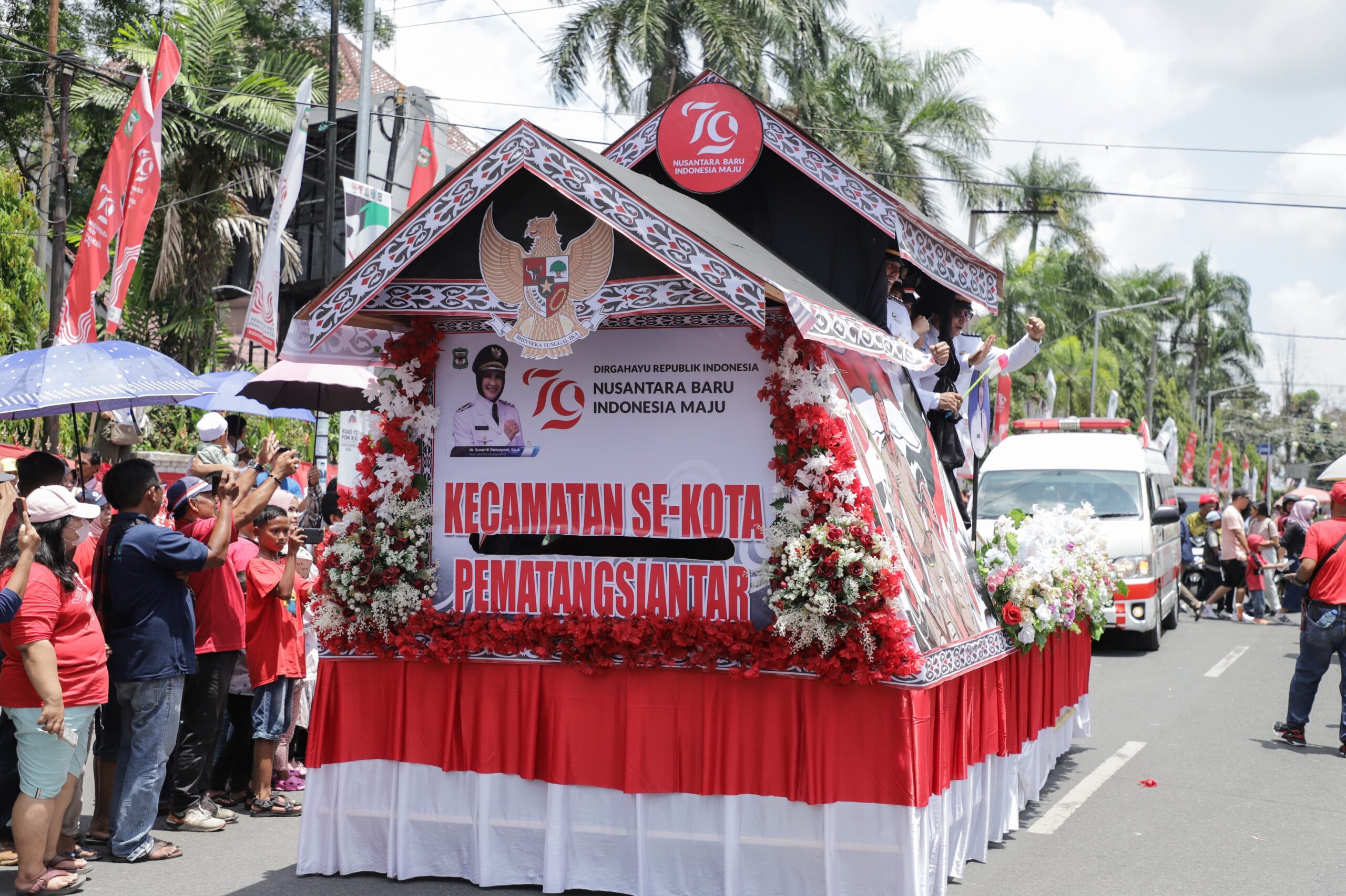 Wali Kota Pematangsiantar dr Susanti Dewayani SpA melepas peserta Karnaval Gempita Kemerdekaan dalam rangka Hari Ulang Tahun (HUT) ke-79 Kemerdekaan Republik Indonesia (RI).