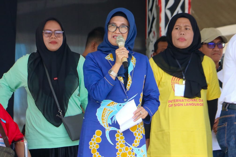 Wali Kota Pematangsiantar dr Susanti Dewayani SpA berbaur dengan para penyandang disabilitas di peringatan Hari Disabilitas Internasional Tahun 2024, di Lapangan Adam Malik, Sabtu (07/12/2024).