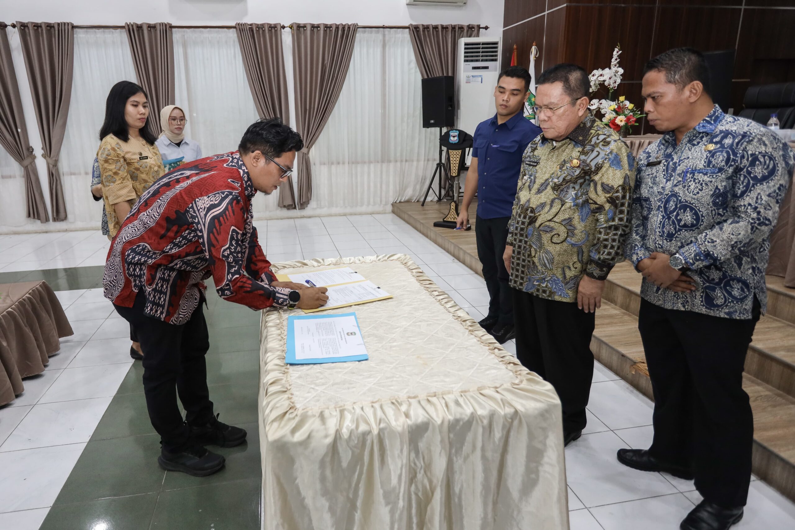 Wali Kota Pematangsiantar Wesly Silalahi SH MKn bersama Sekretaris Daerah (Sekda) Junaedi Antonius Sitanggang SSTP MSi dan para pimpinan perangkat daerah serta camat melakukan Penandatanganan Dokumen Perjanjian Kinerja Pimpinan Perangkat Daerah di Lingkungan Pemerintah Kota (Pemko) Pematangsiantar Tahun 2026. Penandatanganan kinerja ini digelar di Ruang Serbaguna Pemko Pematangsiantar, Jumat (30/01/2026).