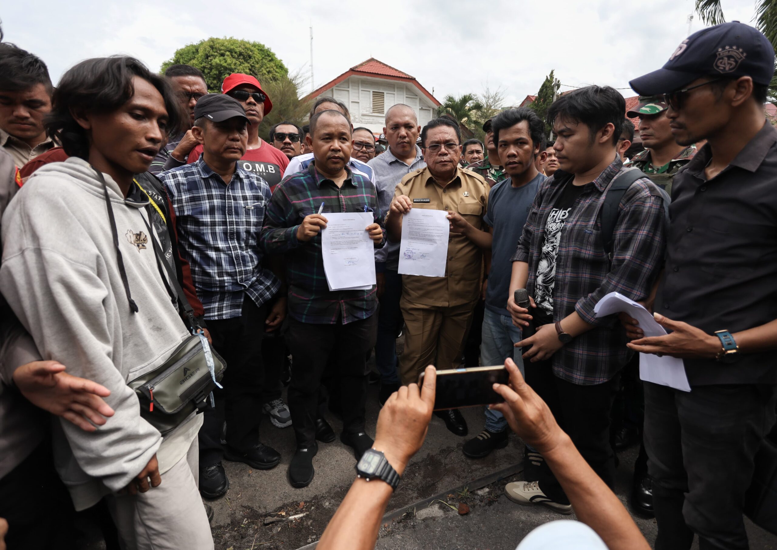 Walaupun cuaca cukup terik, namun Wali Kota Pematangsiantar Wesly Silalahi SH MKn bersama Forkopimda rela duduk bersama massa pengunjukrasa di depan Gedung DPRD Kota Pematangsiantar, Jalan H Adam Malik. Bahkan Wesly dan Forkopimda menandatangani nota kesepakatan dengan pengunjuk rasa.