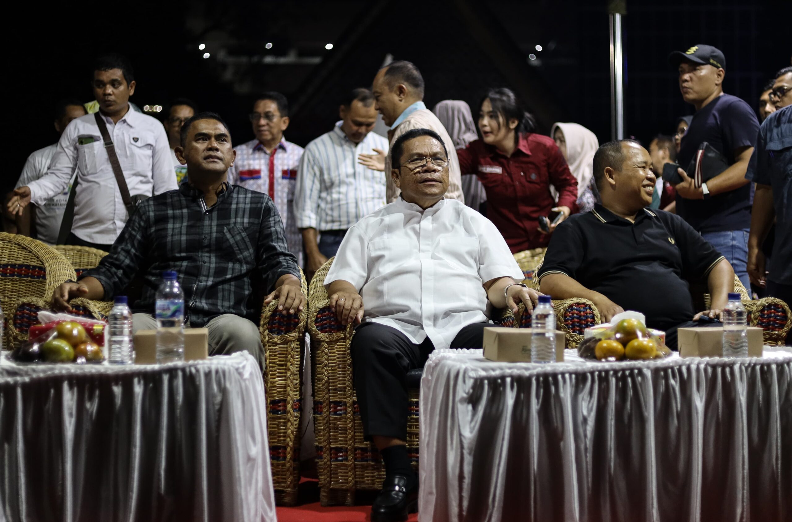 Wali Kota Pematangsiantar Wesly Silalahi SH MKn bersama Unsur Forkopimda menyaksikan Konser 154 Tahun yang menjadi rangkaian terakhir peringatan Hari Jadi ke-154 Kota Pematangsiantar Tahun 2025, di Lapangan Adam Malik, Sabtu (26/04/2025) malam.