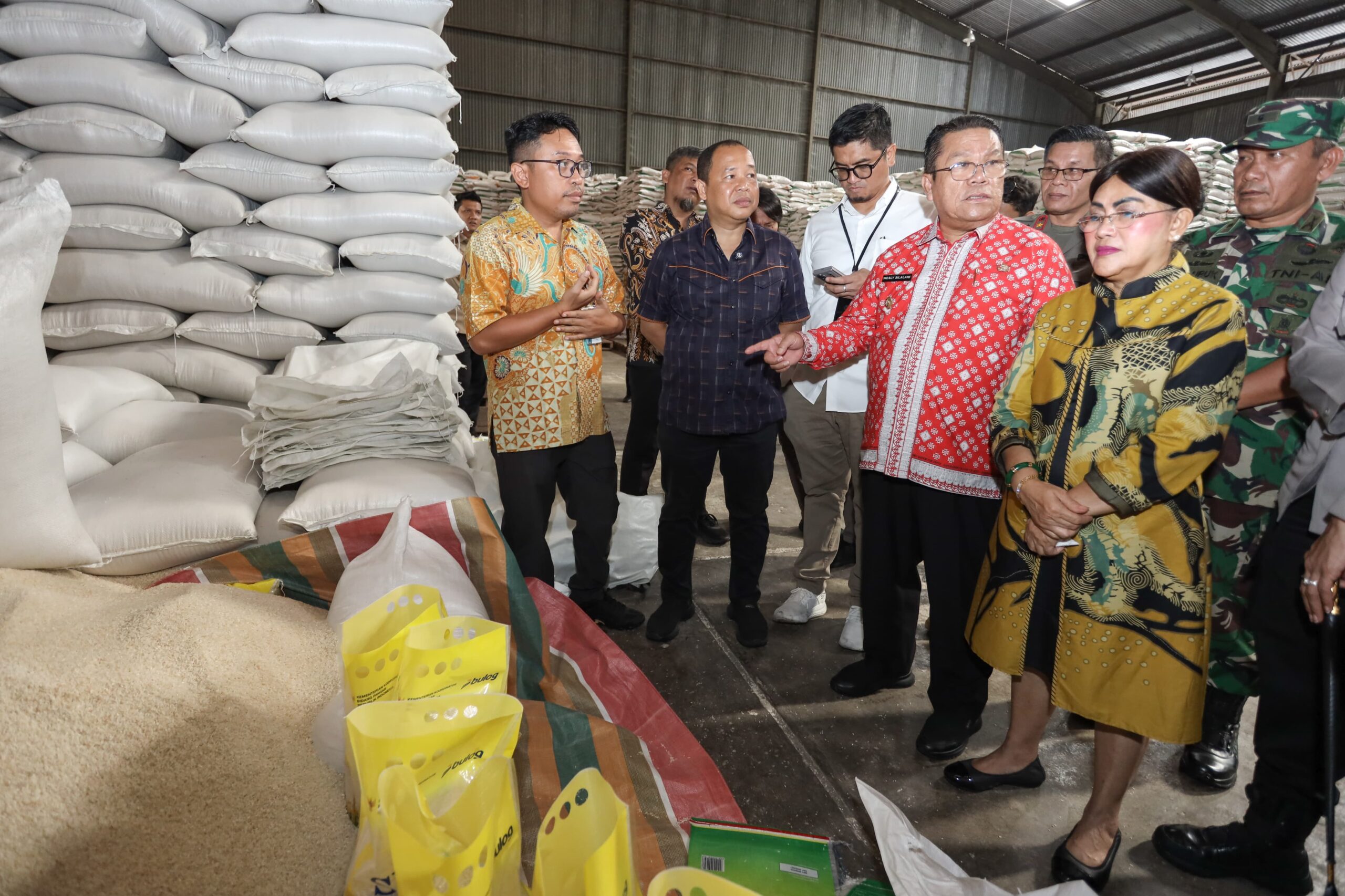 Dari Pasar Dwikora, Wesly bersama Forkopimda mendatangi gudang Bulog di Jalan Medan guna memastikan ketersediaan beras menjelang Hari Natal dan Tahun Baru.