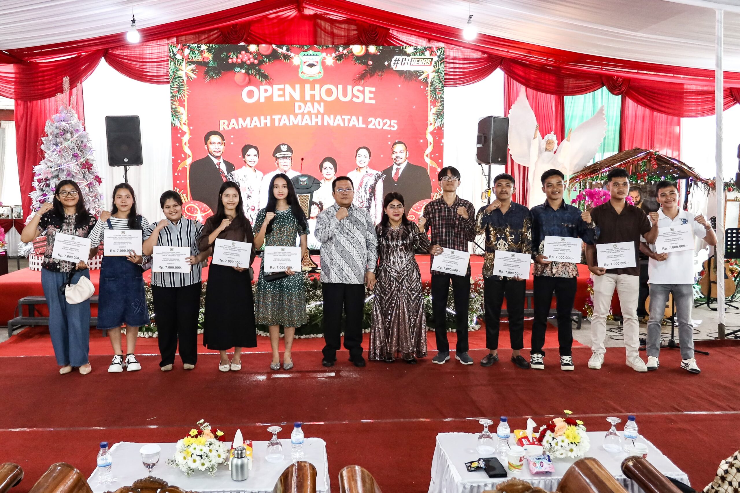 Wali Kota Wesly Silalahi SH MKn bersama keluarga mengadakan Open House dan Ramah tamah Natal 2025 di rumah dinas wali kota, Jalan MH Sitorus Kelurahan Teladan Kecamatan Siantar Barat, Sabtu (27/12/2025).