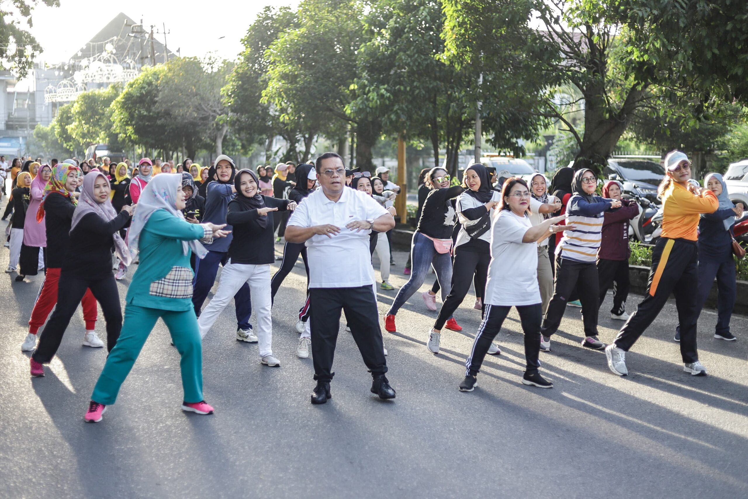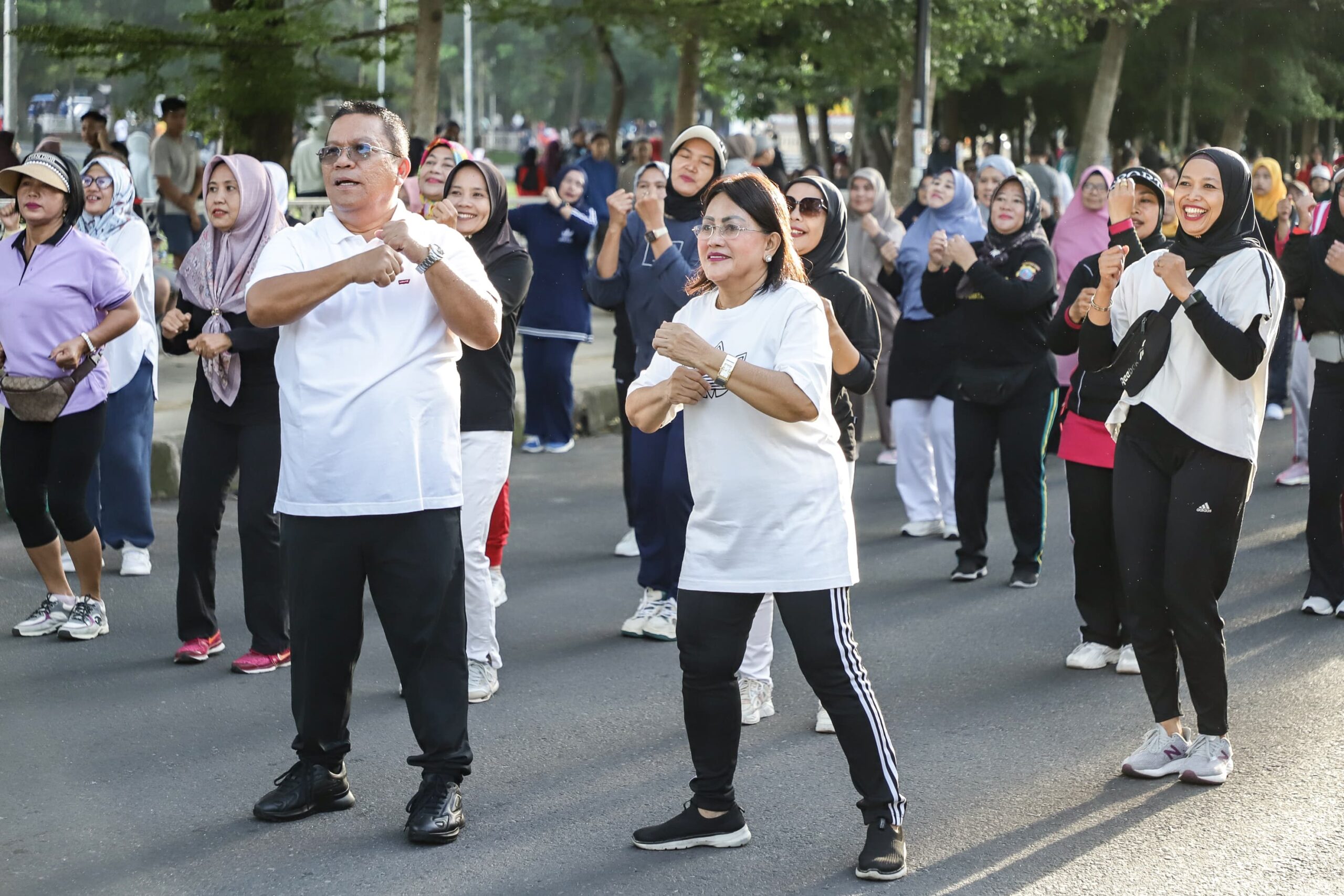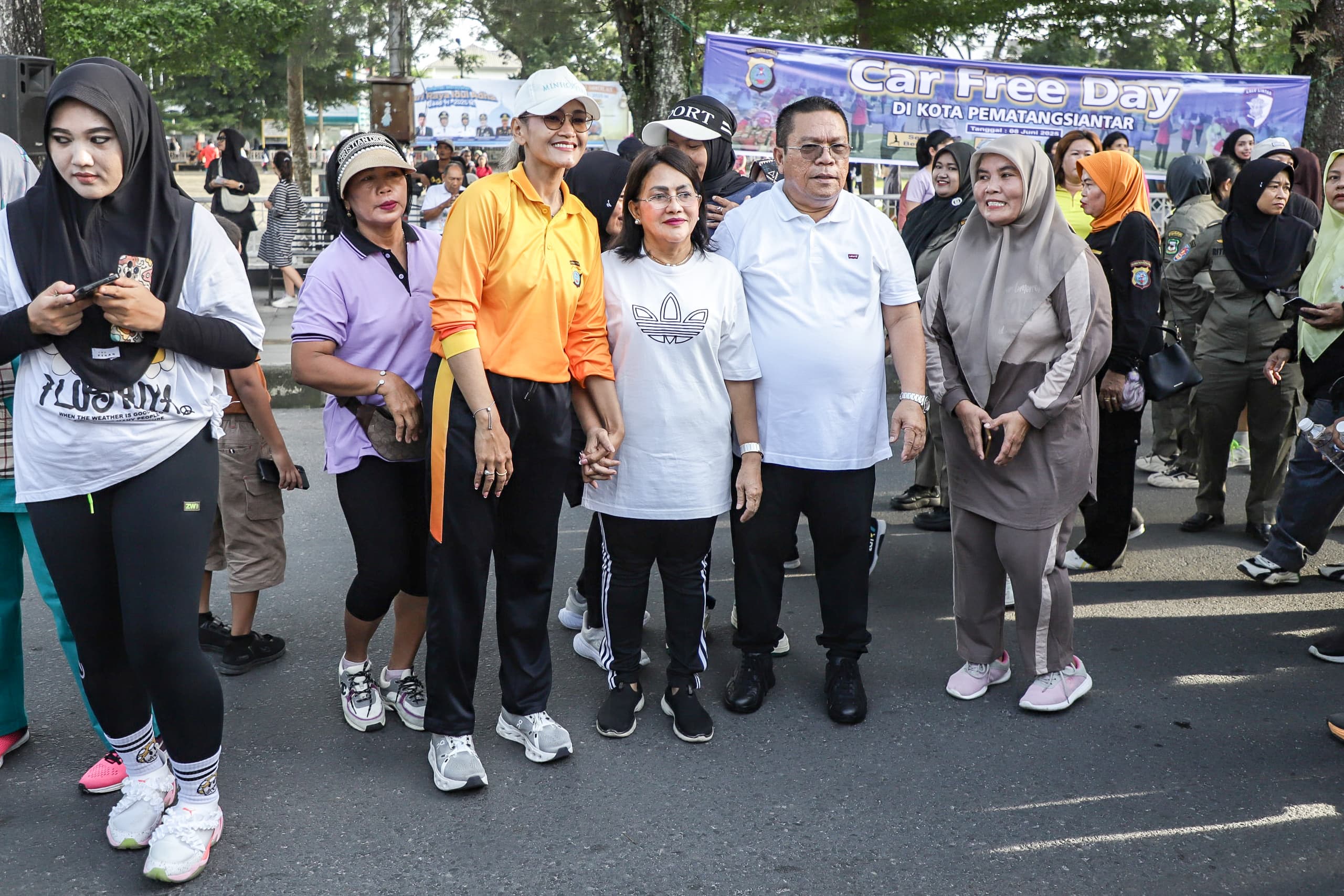Wali Kota Pematangsiantar Wesly Silalahi SH MKn bersama Ketua TP PKK Ny Liswati Wesly Silalahi mengikuti kegiatan Car Free Day (CFD) yang digelar Satuan Lalulintas (Satlantas) Polres Pematangsiantar, di Jalan Adam Malik, Minggu (08/06/2025).