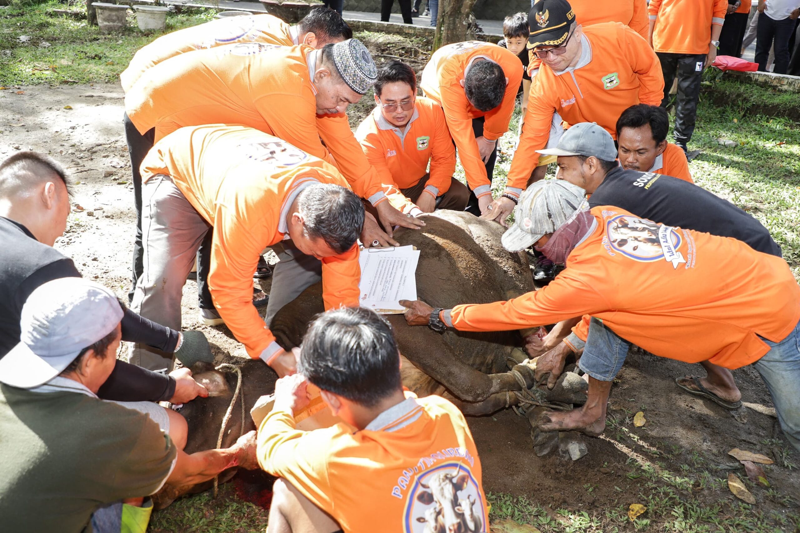 Wali Kota Pematangsiantar Wesly Silalahi SH MKn dan Ketua TP PKK Ny Liswati Wesly Silalahi menyaksikan langsung penyembelihan hewan kurban dalam rangka Hari Raya Idul Adha 1446 H/2025 M.