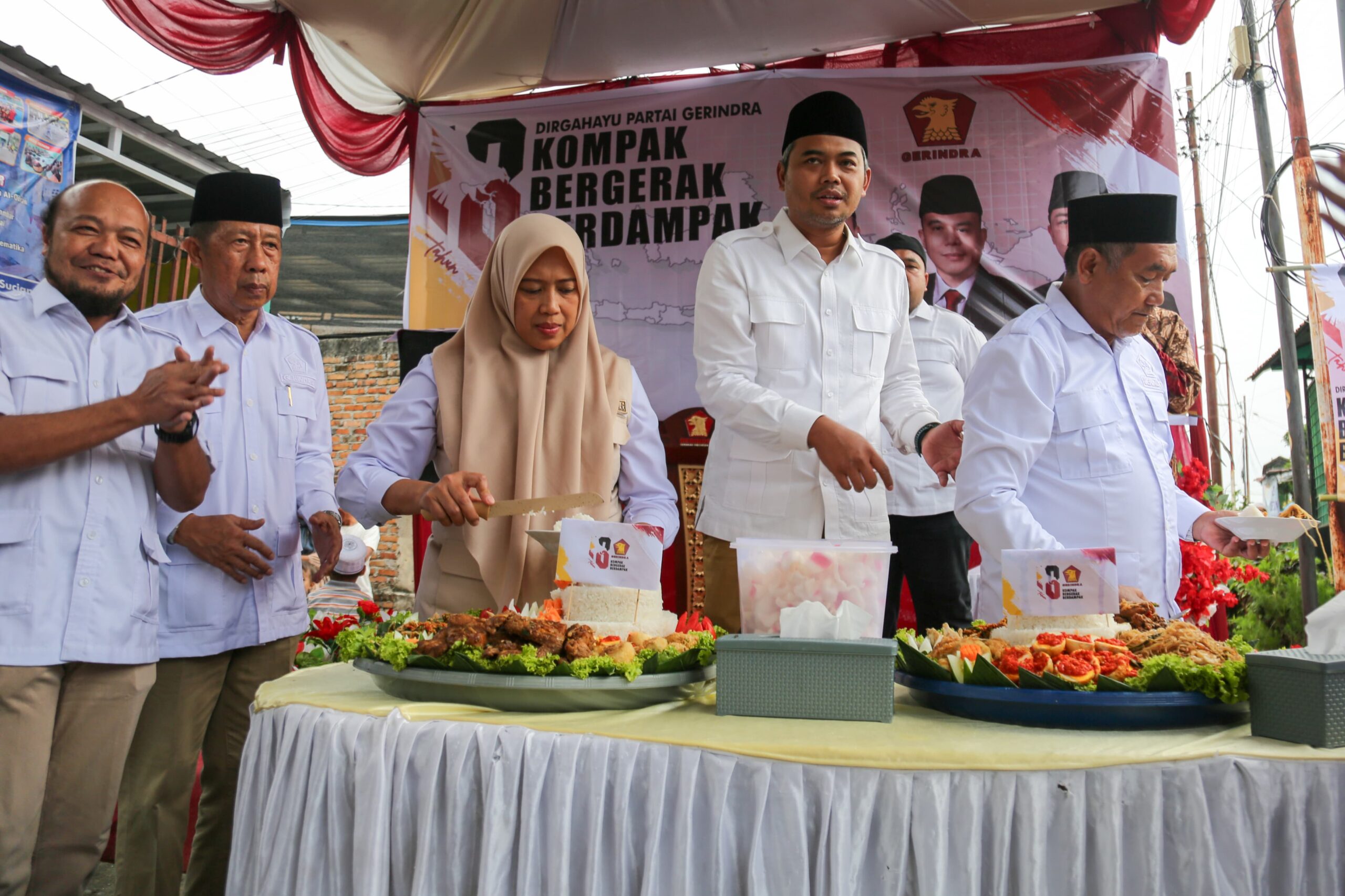 Pada kesempatan tersebut, Herlina bersama Ketua DPC Partai Gerindra Kota Pematangsiantar Gusmiyadi serta Penasehat DPC Parrai Gerindra Kota Pematangsiantar memotong tumpeng.