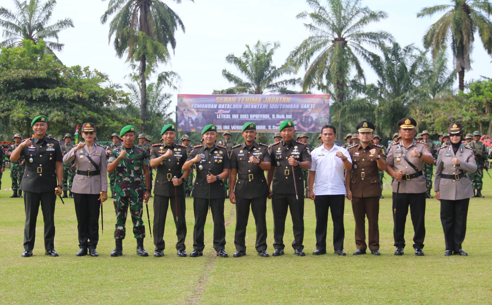Jabatan Komandan Yonif (Danyon) 122/Tombak Sakti (TS) diserahterimakan dari Letkol Inf Diki Apriyadi SHub Int kepada Letkol Inf Wahidin Sobar SSos MSc.