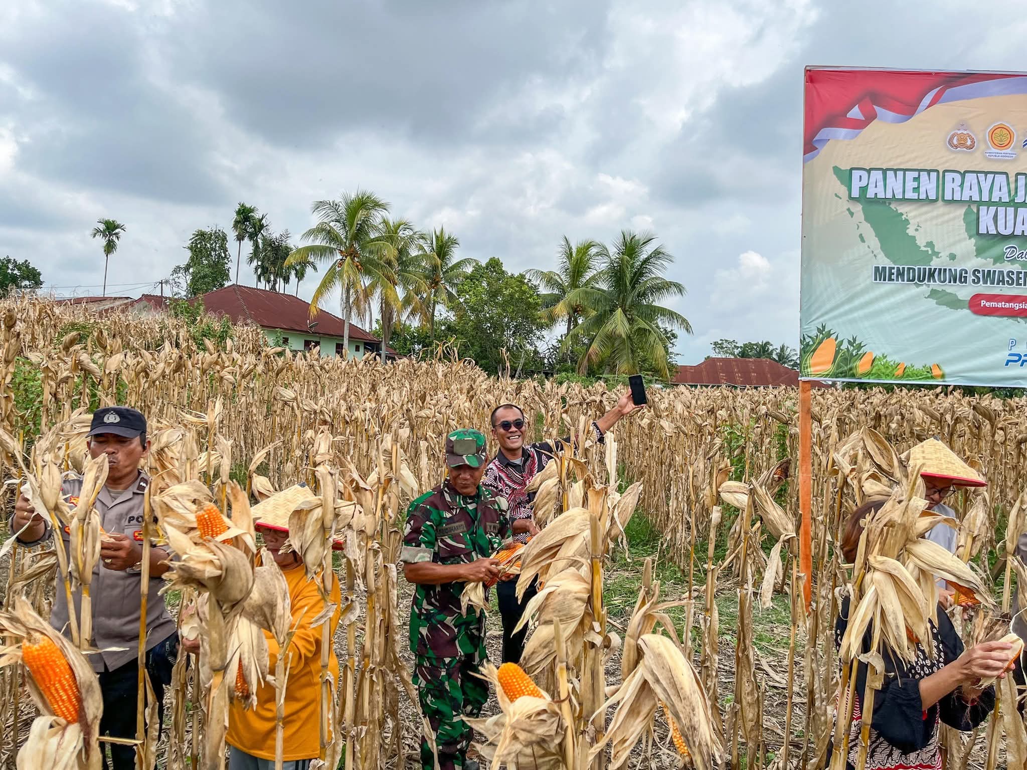 Wali Kota Pematangsiantar Wesly Silalahi SH MKn diwakili Asisten Perekonomian dan Pembangunan Zainal Siahaan SE MM mengikuti Panen Raya Jagung Serentak Kuartal III di Jalan Bahkora II Kelurahan Marihat Jaya Kecamatan Siantar Marimbun, Sabtu (27/09/2025). Panen Raya Jagung Serentak tersebut dilaksanakan Polres Pematangsiantar.