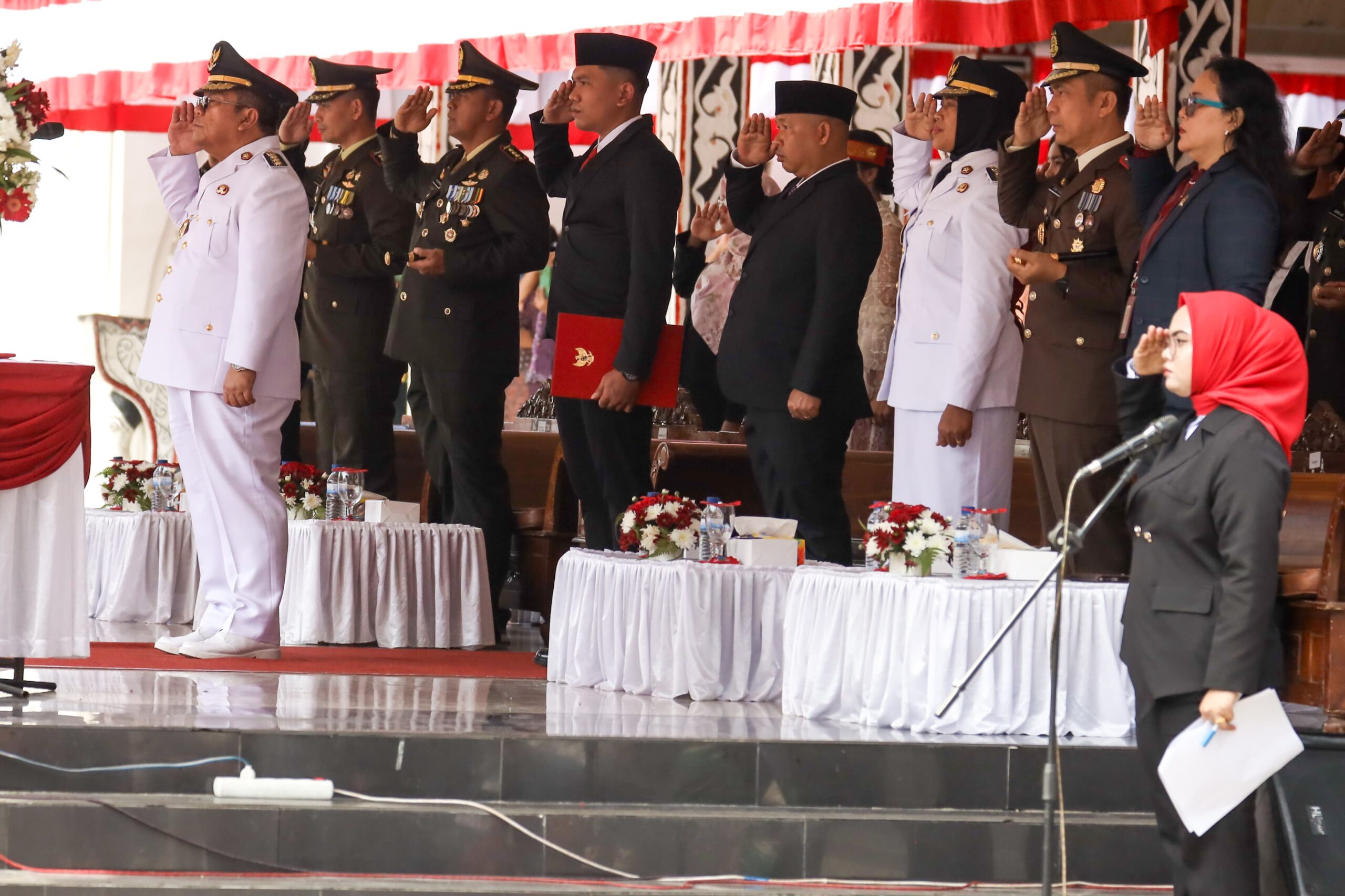 Ketua DPRD Kota Pematangsiantar Timbul Marganda Lingga SH membacakan teks Proklamasi dan doa oleh Kepala Kantor Kementerian Agama (Kakan Kemenag) Pematangsiantar Dr H Al Ahyu MA.