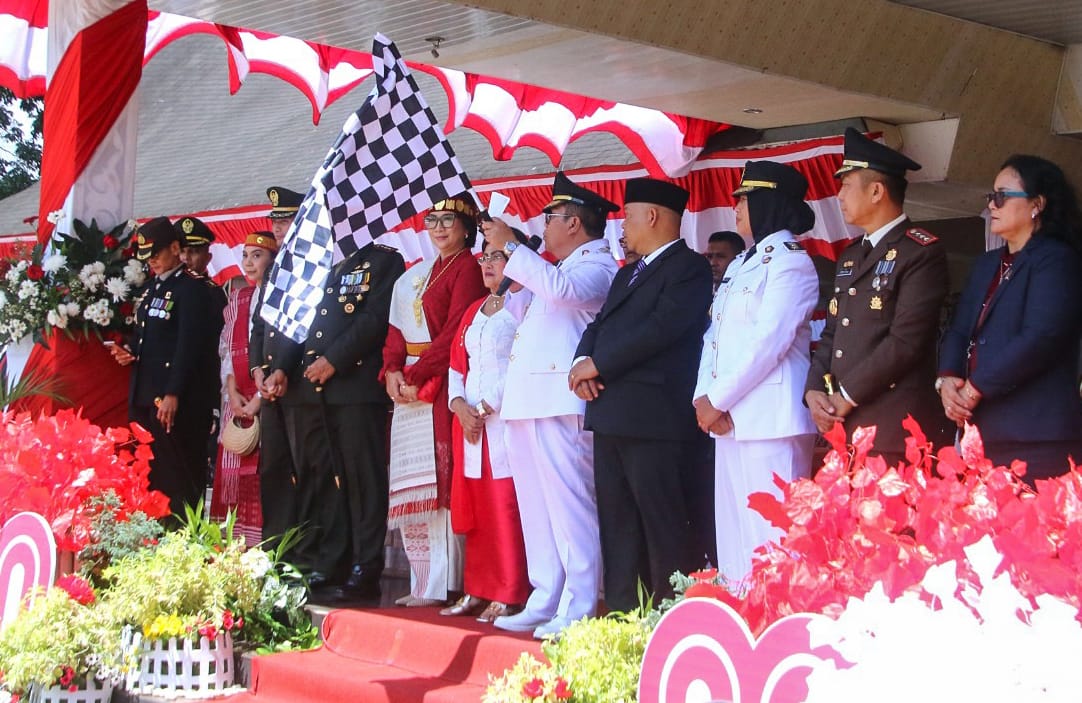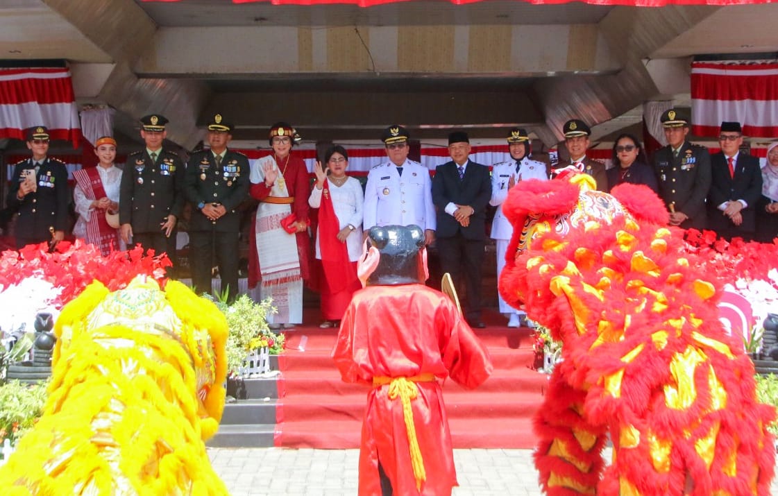 Wali Kota Pematangsiantar Wesly Silalahi SH MKn didampingi Ketua TP PKK Ny Liswati bersama Wakil Wali Kota Herlina dan unsur Forkopimda melepas Karnaval Gempita Kemerdekaan Semarak Dirgahayu ke-80 Kemerdekaan Republik Indonesia (RI). Karnaval digelar usai upacara Peringatan Detik-detik Proklamasi Kemerdekaan RI, di Lapangan Adam Malik, (17/08/2025).