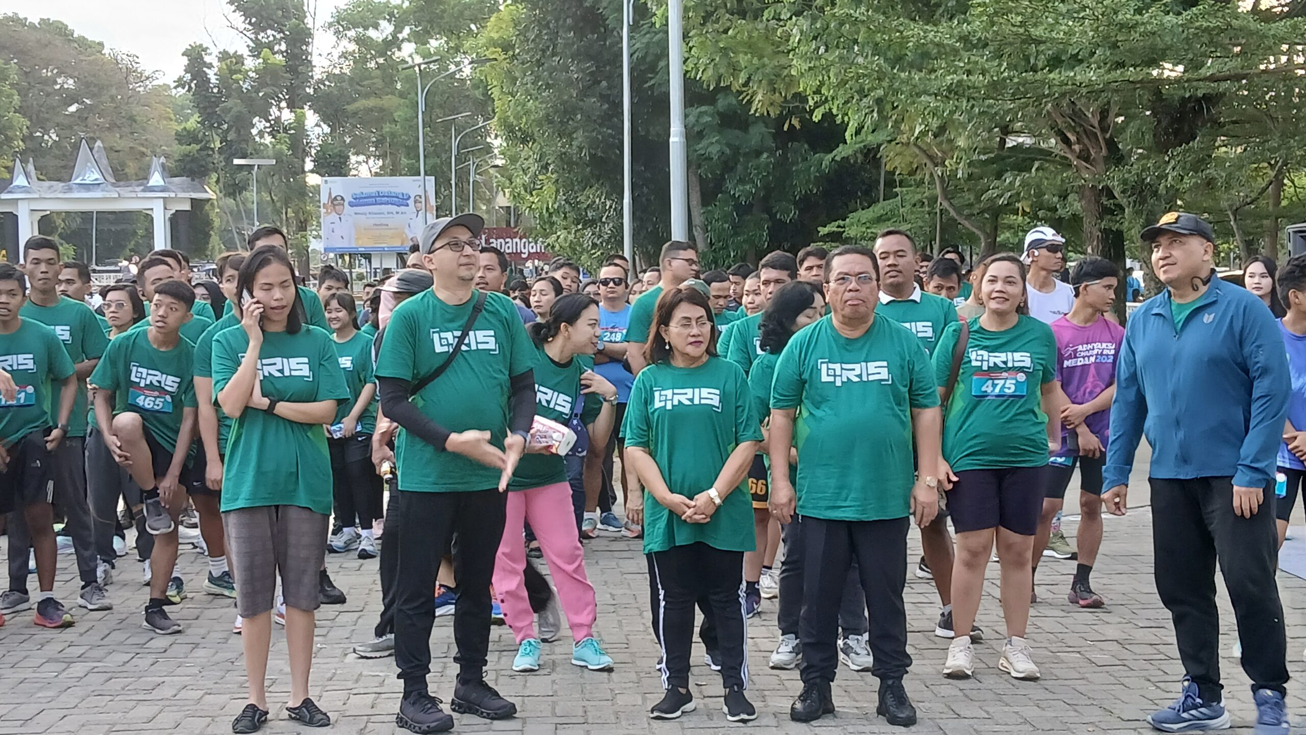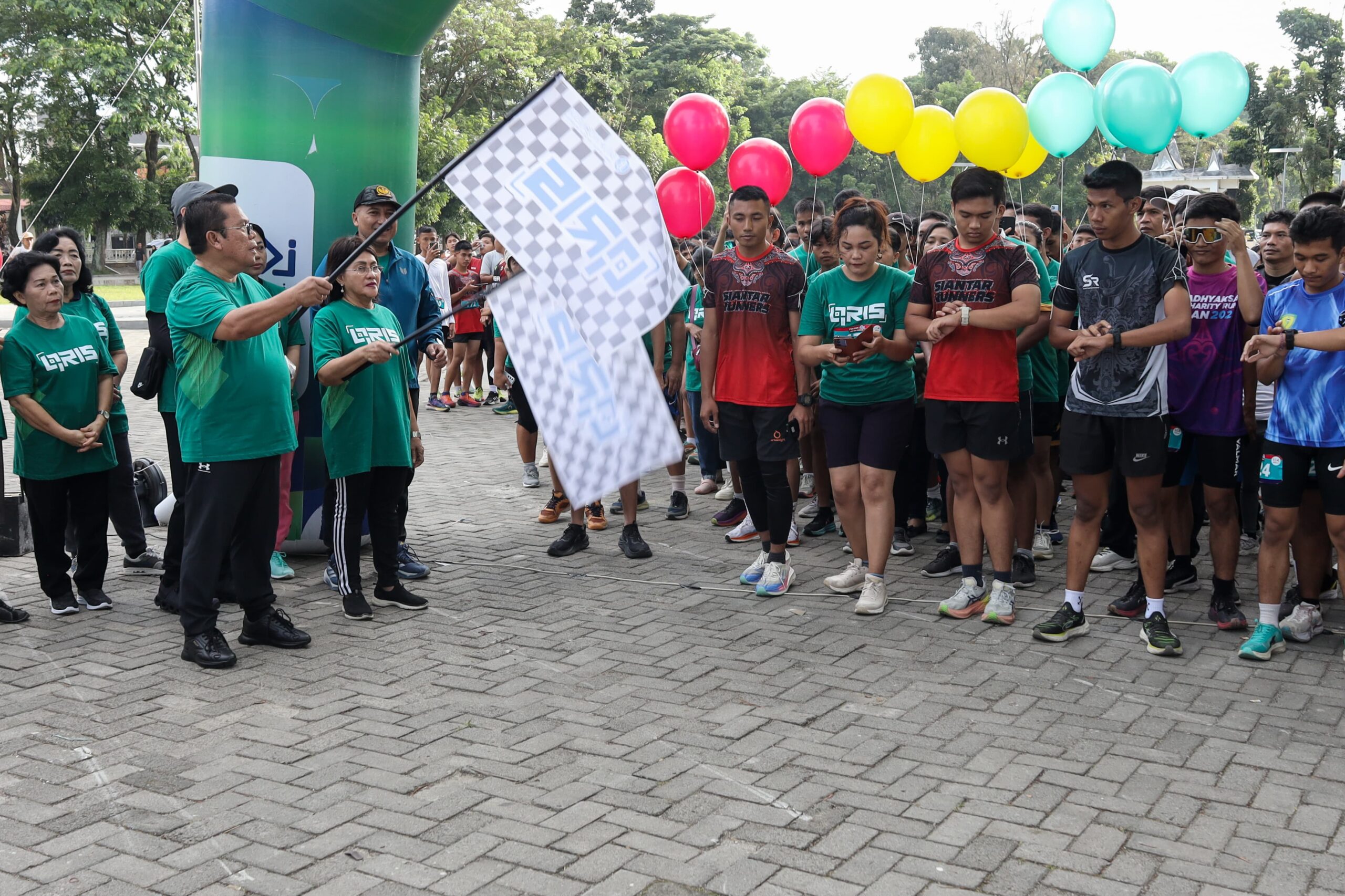 Wali Kota Pematangsiantar Wesly Silalahi SH MKn bersama Ketua TP PKK Kota Pematangsiantar Ny Liswati Wesly Silalahi melepas melepas ratusan peserta Fun Run X FAST (Festival Ekonomi Syariah dan Digital) Tahun 2025, di Lapangan Adam Malik, Sabtu (19/04/2025) pagi.