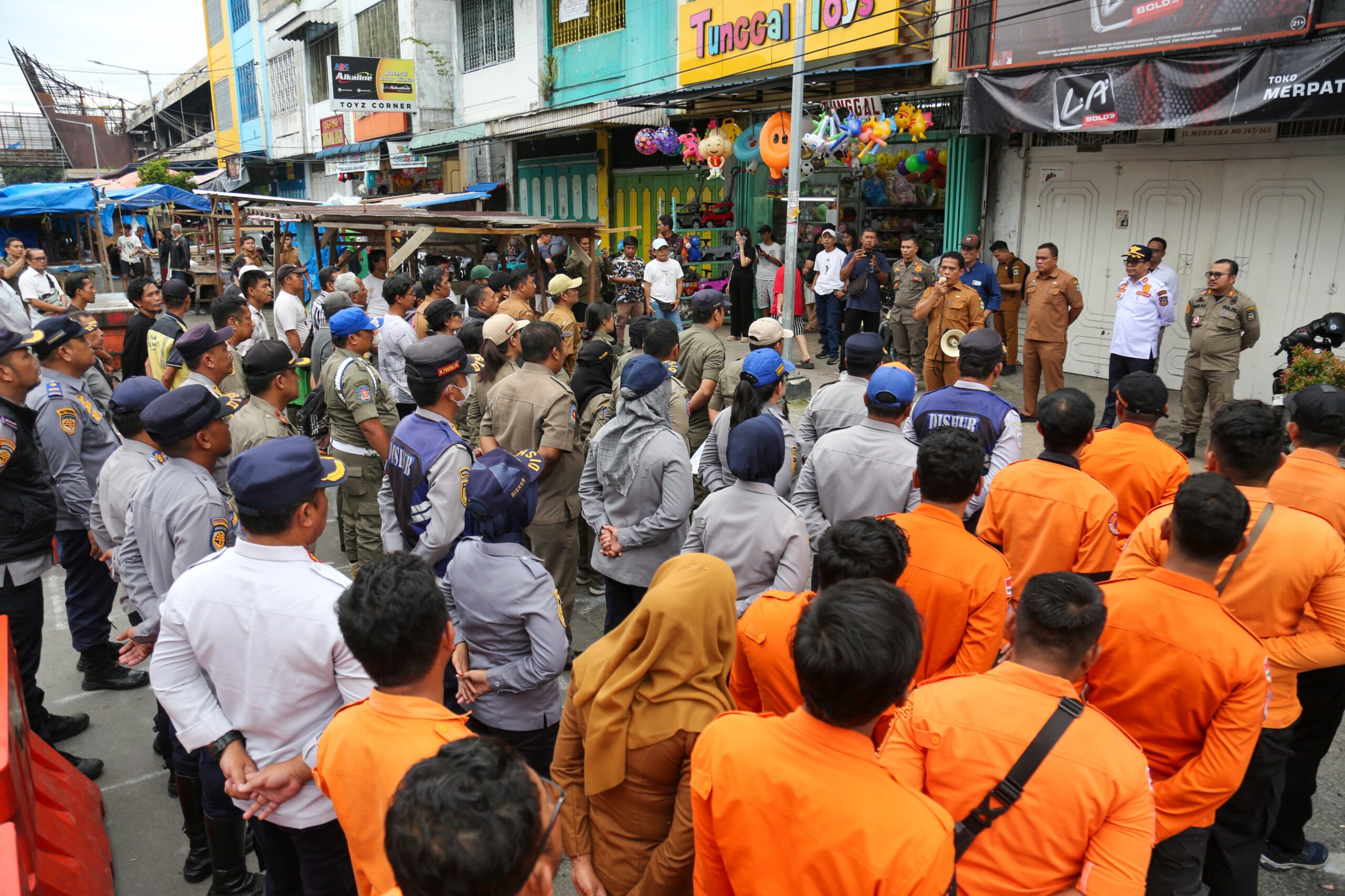 Usai berinteraksi dengan para pedagang, Junaedi mewakili Wali Kota Pematangsiantar Wesly Silalahi SH MKn memimpin apel kesiapsiagaan dalam rangka relokasi pedagang Gedung IV Pasar Horas.