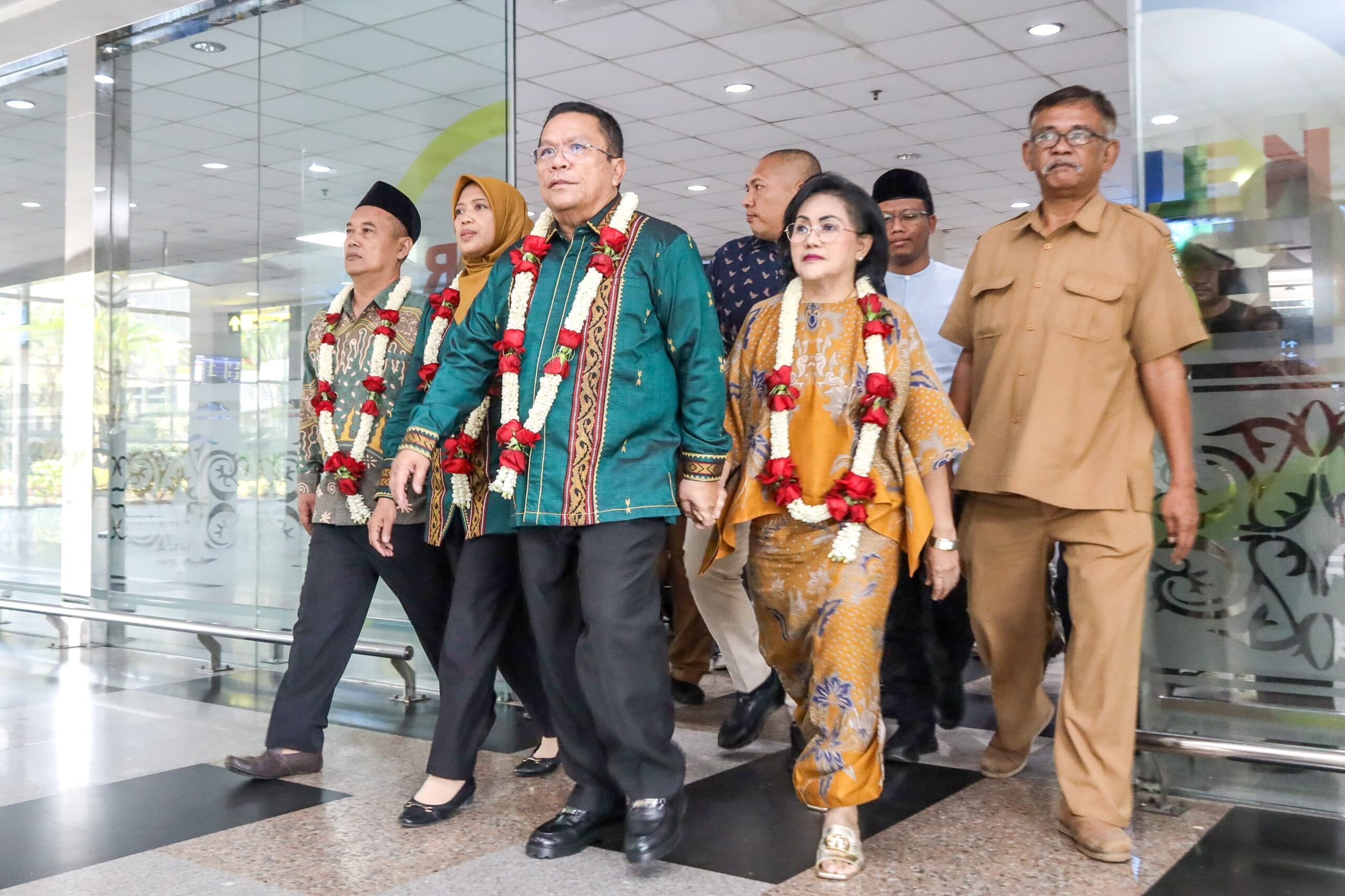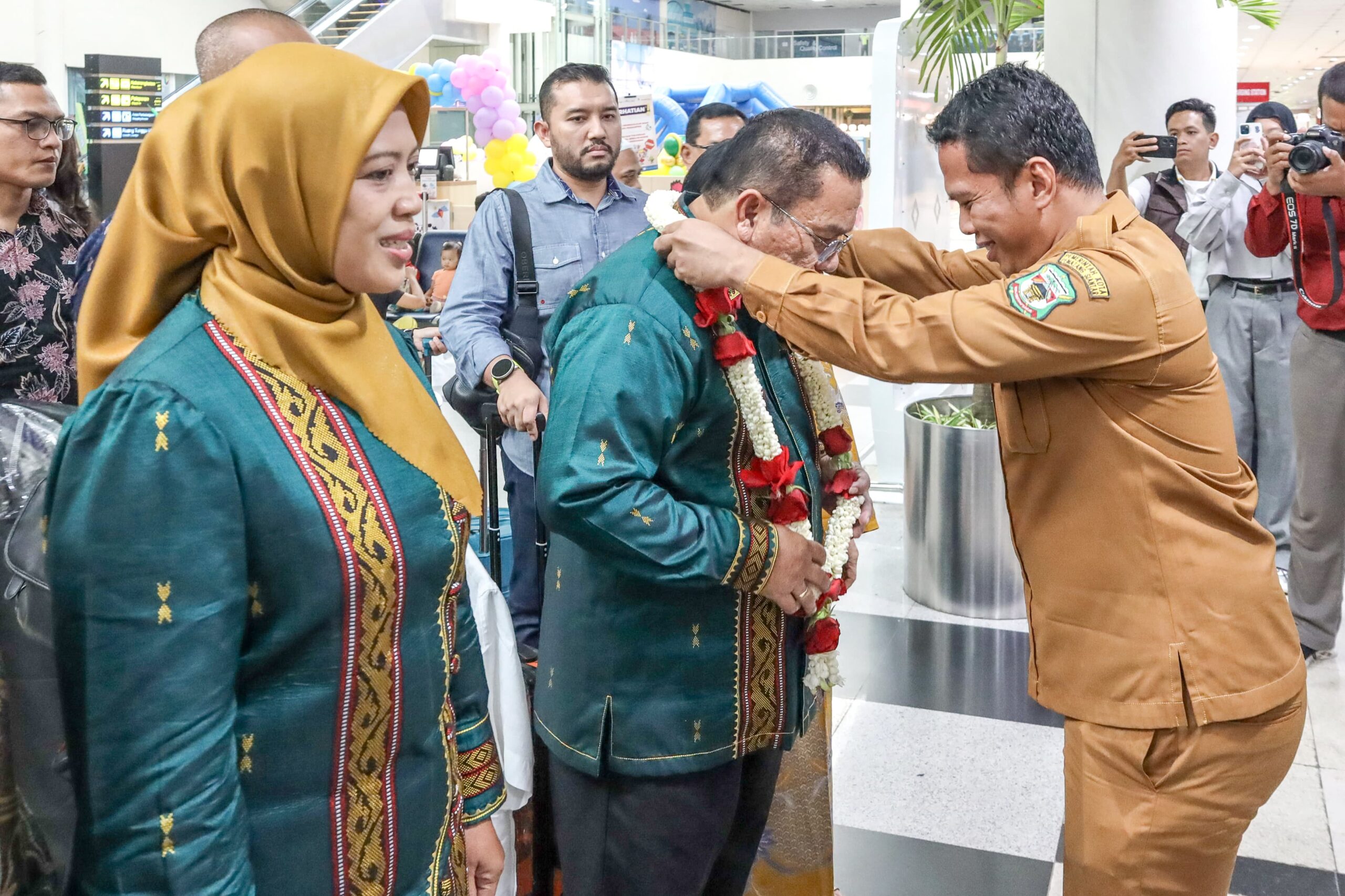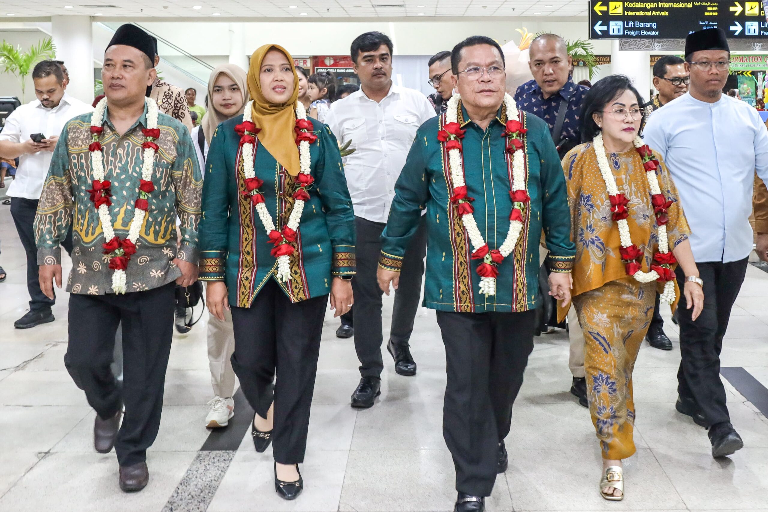 Wali Kota dan Wakil Wali Kota Pematangsiantar Wesly Silalahi SH MKn dan Herlina tiba di Bandara Internasional Kualanamu Deliserdang, Senin (03/03/2025).