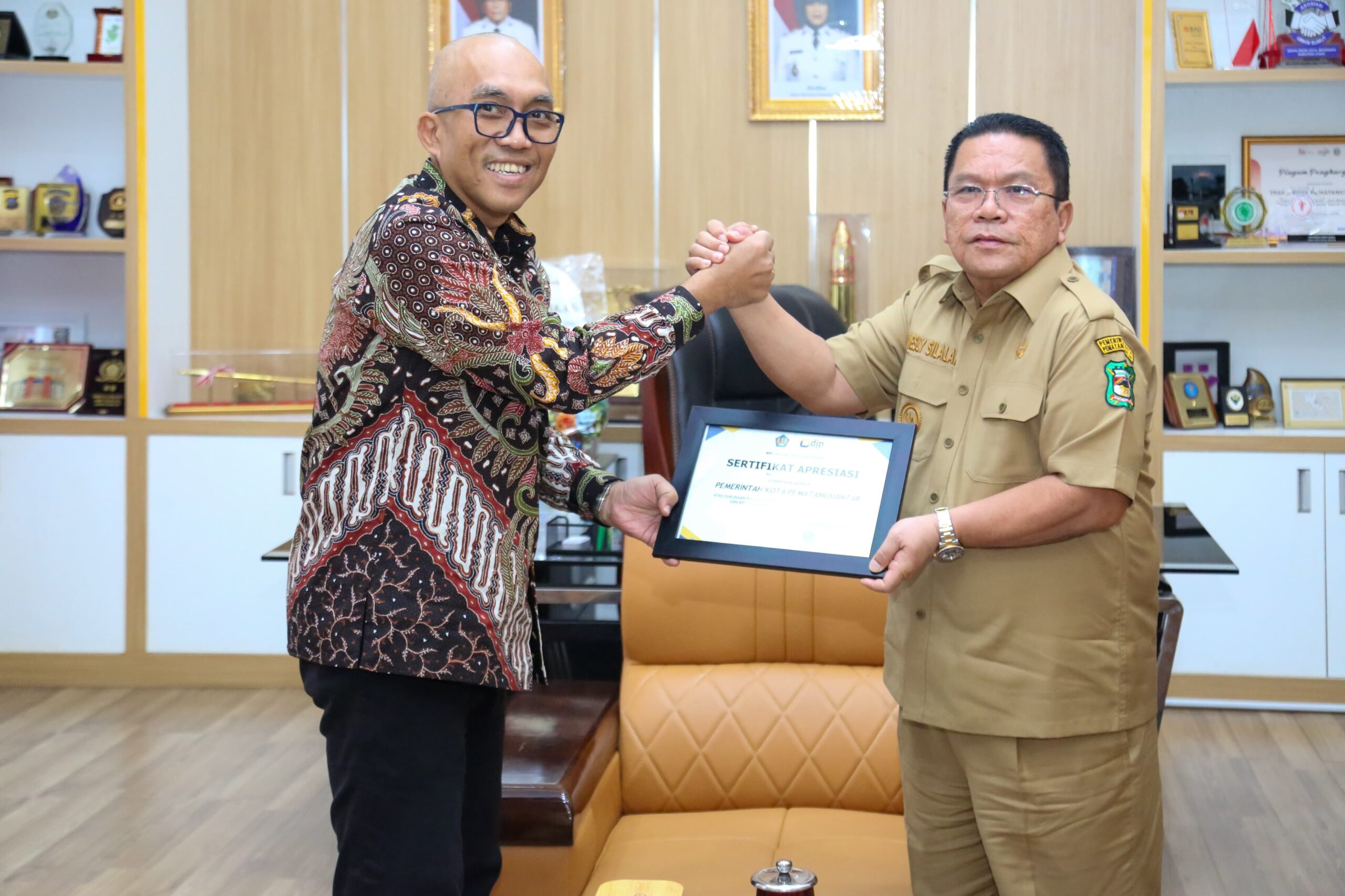 Wali Kota Pematangsiantar Wesly Silalahi SH MKn menerima kunjungan Kepala Kantor Direktorat Jenderal Pajak (DJP) Sumatera Utara (Sumut) II Anton Budhi Setiawan, Kepala Kantor Pelayanan Pajak (KPP) Pratama Pematangsiantar Budiman Napitupulu, dan Kepala Kantor Pelayanan Perbendaharaan Negara (KPPN) Pematangsiantar Nova Juliana Sianturi.
